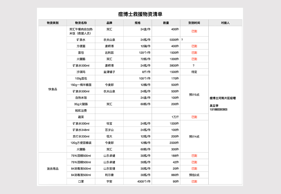 痘博士“援助河南水患统筹小组”要求,所有送往灾区的生活物资品质必须最好,供应商必须拥有相关资质,货物必须以最快速度发往灾区。