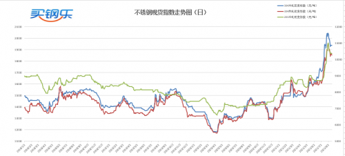 原料市场方面镍铁、铬铁均价持平,电解镍金川价格下调2100元/吨,电解锰出厂均价上涨700元/吨。