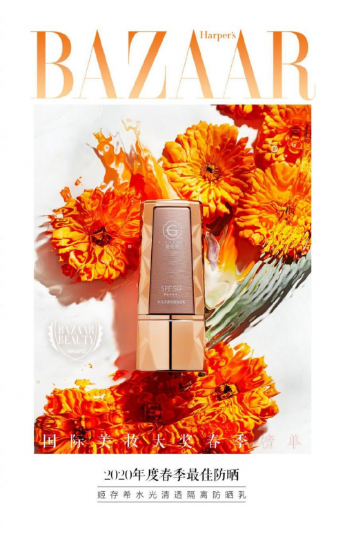姬存希小晶钻防晒乳获《时尚芭莎》评选“2020年度春季最佳防晒