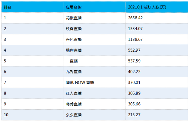 本季度,花椒直播等头部娱乐直播平台凭借丰富的站内活动与高质量的主播资源持续为用户带来各类内容,平台季度活跃用户渗透率处于行业领先位置。