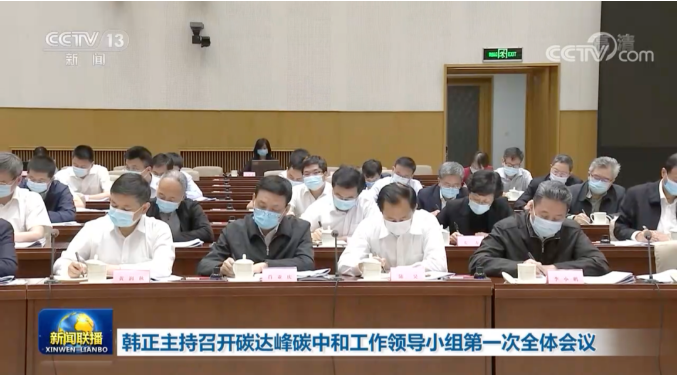 据5月27日《新闻联播》报道 :碳达峰碳中和工作领导小组第一次全体会议 于5月26日 在北京召开 。主持会议者是中共中央政治局常委、国务院副总理韩正;出席会议的有:中共中央政治局委员、 国务院副总理刘鹤、国务委员王勇、国务委员外交部部长王毅、十三届全国政协副主席、国家发改委主任何立峰等。