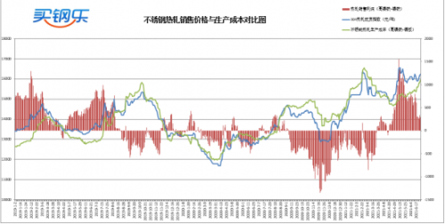 不锈钢使用高镍铁+镍板工艺冶炼304热轧生产成本约为15950元/吨,热轧销售价格高于生产成本300元/吨。