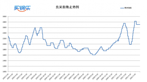 买钢乐焦炭指数收于2710元/吨,较上周持平。