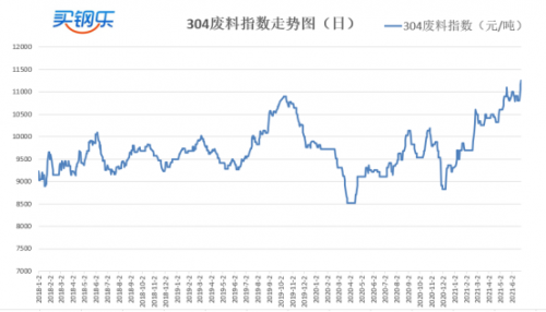 买钢乐304不锈钢废料现货指数收于11258元/吨,较上周上涨450元/吨,涨幅4.16%。