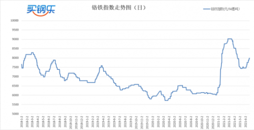 买钢乐高碳铬铁指数价格收于7988元/50基吨,较上周上涨100元/50基吨,涨幅1.27%。