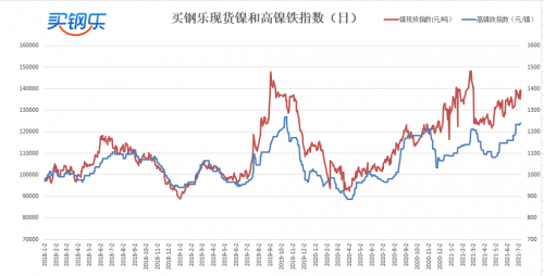 2、镍铁/电解镍: 印尼疫情人数连续保持高增长扰动镍市场,7月不锈钢的高排产也坚定镍价挺价信心。买钢乐高镍铁指数收于1239元/镍,较上周上涨5元/镍,涨幅0.41%;低镍铁收于4850元/吨,较上周持平。电解镍指数收于139375元/吨,较上周上涨3825元/吨,涨幅2.82%。