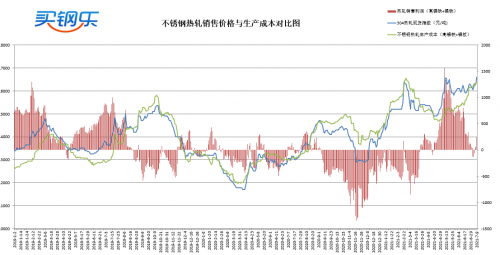五、不锈钢热轧成本不锈钢使用高镍铁+镍板工艺冶炼304热轧生产成本约为16360元/吨,热轧销售价格高于生产成本240元/吨。