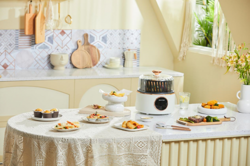 使用AIR-source热能3D空气炸技术,腔体内部均匀受热。利用高速空气循环技术,并且将快速循环热空气和内部螺旋形纹路的独特结合从而使烹饪效果达到油炸食物的效果和口感。铝合金平面加热板内嵌1500W独立发热管加热。通过不同锅具(深锅、煎锅)底部进行加热,从而加热食物。