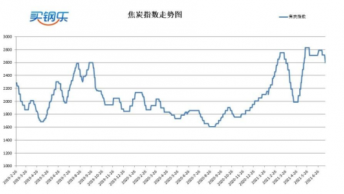买钢乐焦炭指数收于2597元/吨,较上周下跌120元/吨,跌幅4.42%。