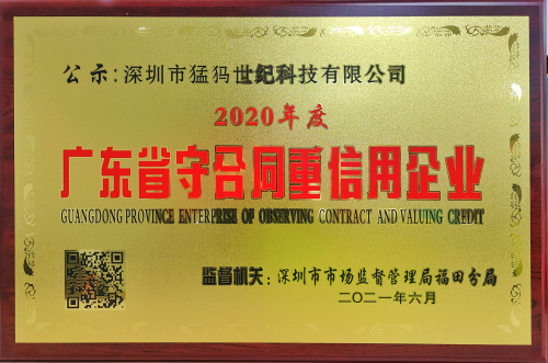 2021年6月,深圳市猛犸世纪科技有限公司收到省工商行政管理局下达通知,正式通过2020年“广东省守合同重信用企业”审核,这是猛犸世纪科技继公司继获得高新技术企业证书后的又一重要荣誉和发展里程碑。猛犸世纪科技能够获此殊荣,证明其在过去的经营活动中始终秉持诚实守信,遵守契约精神的信用理念,更代表着政企权威机构和客户大众对猛犸世纪的认可。目前,所获荣誉已经同步在工商网站,国家企业信用评估公示系统及公司官网等信息平台公示。