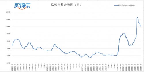 铬铁紧张局面得以缓解,价格弱势走跌。