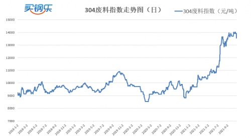 买钢乐304不锈钢废料现货指数收于13560元/吨,较上周下跌350元/吨,跌幅2.52%。。