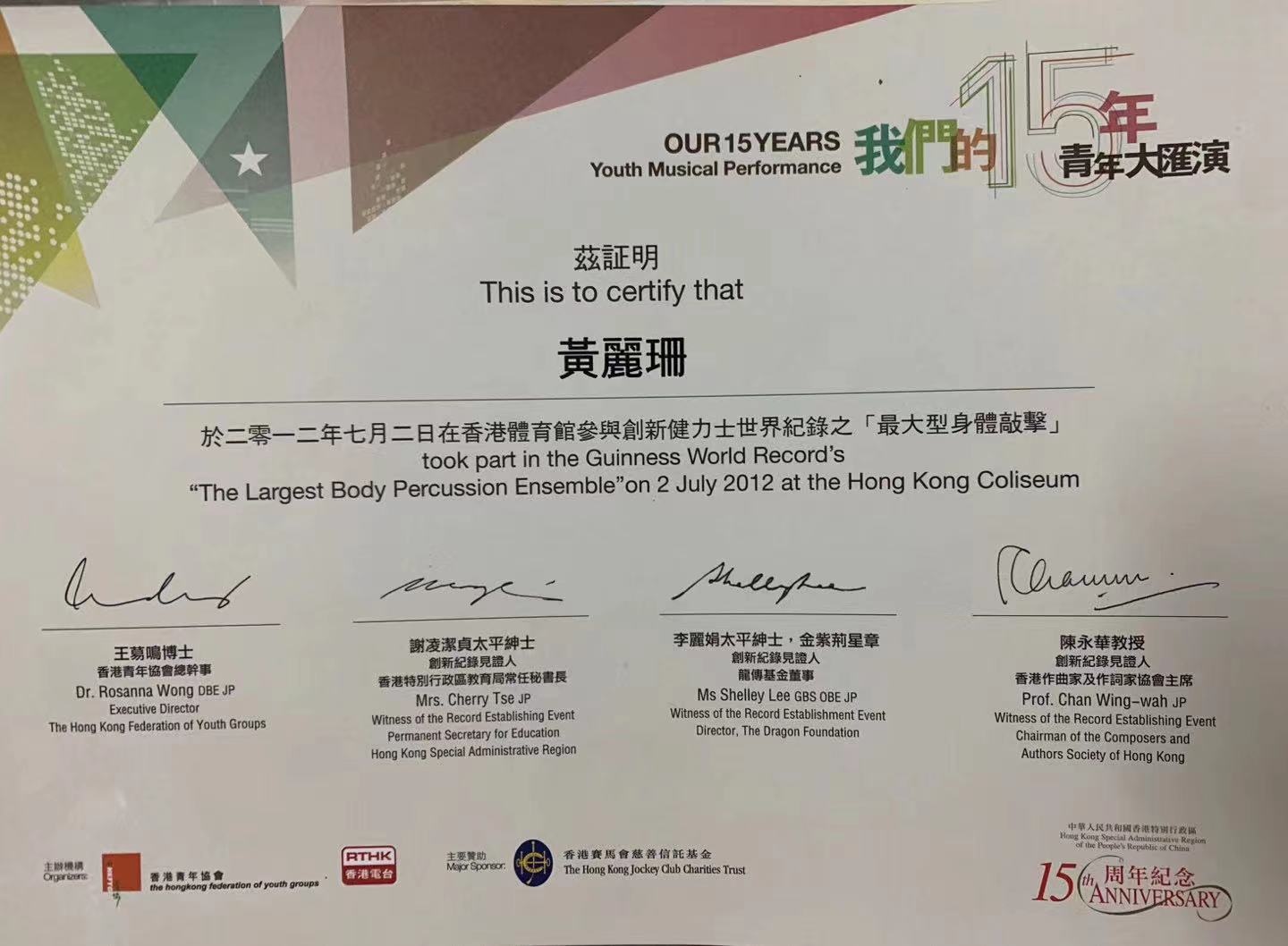 高中,黄丽珊成功当上了香港的社长,经常带领学生参加各种比赛。除了经常积极参与活动。黄丽珊还是一个名副其实的学霸,是吉尼斯世界纪录的共同创造者。