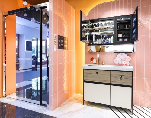 全新亮相的一站式梳洗体验空间——科勒美妆空间,是科勒首度将美妆需求融入卫浴场景,迎合新时代年轻女性对于美妆护肤的强劲诉求,以及生活品质提升下,消费者对于卫浴空间多功能的需求。