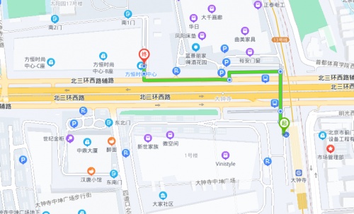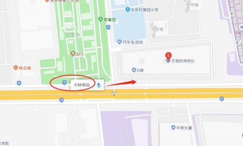 另外还有一个公交站,是在方恒时尚中心西侧的大钟寺门口,叫“大钟寺”站。在这个站下车之后直接沿着北三环西路辅路往东边直走就行了,走过大钟寺东路之后就是方恒时尚中心,很容易看到。