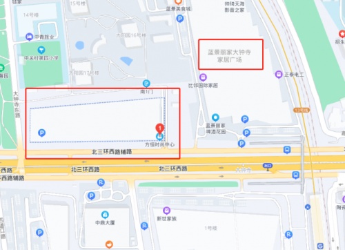 前几天到方恒时尚中心附近去过几次,方恒时尚中心东侧就是一个家居广场,叫蓝景丽家大钟寺家居广场,我跑了好几趟就是到这里去看家具。这个家居广场在北三环西路北侧,可以直接开车过去。
