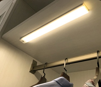 如用上衣柜感应灯,开柜即亮,省去了在黑暗中找按钮的麻烦,找衣服变得很简单,而且逼格满满。