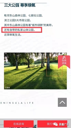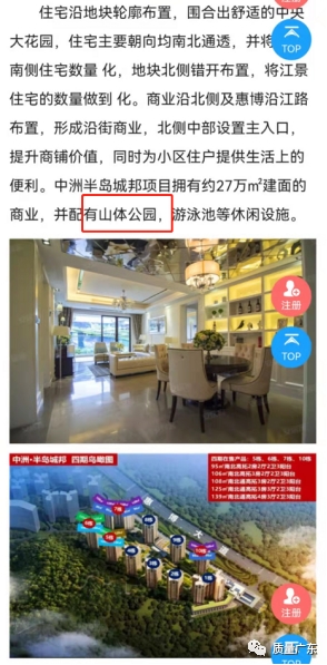 在中洲半岛城邦前期宣传文案中开发商也有对山体公园的相关承诺