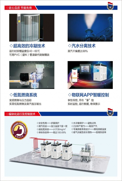 西蒙迪全预混贯流超低氮蒸汽机最新结构技术,完美压缩结构体积外,还能保持强大的结构技术。同时以超高效的冷凝余热回收,是节能减排的不二之选。