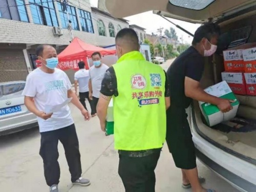 2021年8月共享乐购各乡镇服务站为防疫卡点捐赠抗议物资。