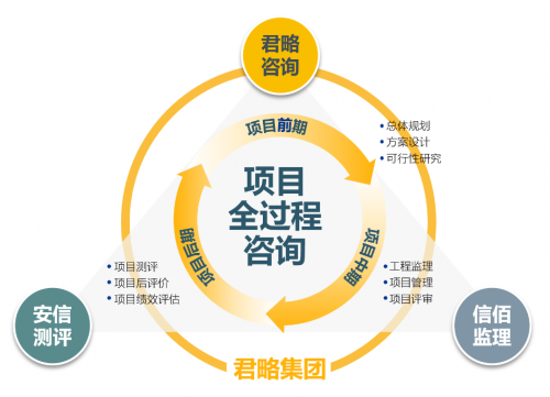 目前,君略集团已经构筑了集团化发展的架构,形成了“君略咨询”“信佰监理”“安信测评”等三大服务品牌,具有工程咨询甲级资信、工程监理甲级资信、涉密信息系统集成资质、建筑智能化设计资质、高新技术企业、检验检测机构计量认证(CMA)等多项重要资质能力,并多次荣获国家和省级工程咨询成果一等奖、二等奖、三等奖。君略集团在项目全过程咨询方面达到国内前列水平。