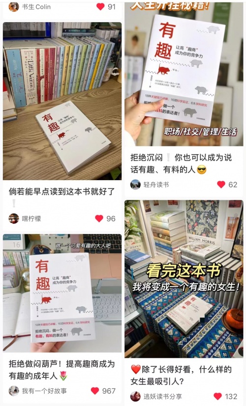 在豆瓣和小红书上,有许多网友以及博主分享了他们的读后感,大家对“有趣”有了新的认识和定义,有很多网友评论大呼原来有趣还可以学到,其中一个网友说:“有趣悄无声息的融入在大家的生活中,在看到《有趣》这本书之前,从来没有思考过有趣到底是什么?看过书后,收获跟思考颇多,原来有趣也是可以后天习得了,跟着书中21天变有趣计划打卡,让自己每天更有趣一点。”
