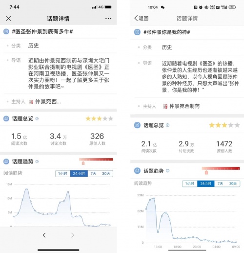微博“医圣张仲景到底有多牛”冲上微博话题热搜榜,话题累计阅读量已突破1.6亿,“张仲景你是我的神“热搜话题单日阅读突破2亿。”一直在追剧,不仅追的是剧,还有中医精神。”“到南阳特意去了医圣祠。““多一点中医电视剧!”