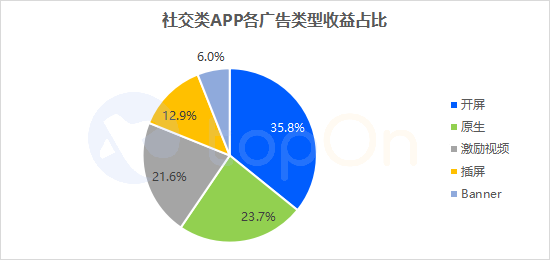 社交类APP:原生和开屏展示次数更高,各类型样式收益占比较均衡