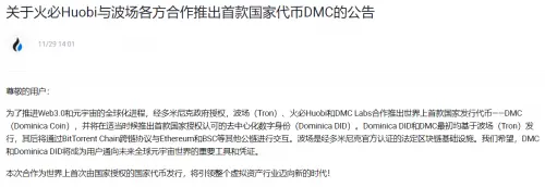 11月29日,火必Huobi、波场TRON、DMC Labs与多米尼克达成重磅合作,多米尼克政府授权波场TRON发行多米尼克国家代币DMC(Dominica Coin)和去中心化数字身份(DID),持有代币者将被授予多米尼克国家数字身份。这一协议促进区块链行业与主权国家之间的合作达到更高水平,同时将对行业起到示范效应,推动Web3.0去中心化数字身份在加勒比地区甚至全球范围内的进一步发展。