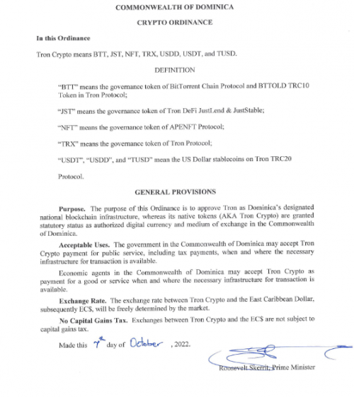 波场TRON与多米尼克的一系列合作均有政府层面发文和总理签字,具备法律效应,不能因为多米尼克是个小国家,媒体不熟悉而胡乱质疑该国国家文书的有效性和权威性。