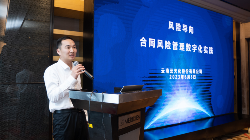 云南云天化股份有限公司风险管理部部长牛利民发表了主题为《云天化风险导向的合同风险管理数字化实践》的演讲。云天化重点推的是三化,管理的制度化,制度的流程化,流程的信息化。早在没有推行信息化建设的时候,相对方的资质不明确,企业授信管理不匹配,对企业经营来说资金风险是最大的风险,比如采购过程中把钱付出去了,货没拿回来,另一种销售场景是货发出去了,钱没收回来,无论哪种情况,对企业来说都是重大风险。授信管控,实际上是通过信用评级的模型,给向对方评估合同额度,如果评估额度为一千万,那么业务就只能做到一千万,想产生两千万业务的风险是不可能的,从根源上降低企业业务运营风险,合同管理成为企业经营管理的重要抓手。