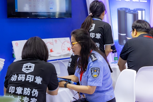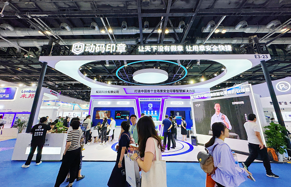 本届展会上,动码印章作为一种具有创新意义和广泛应用前景的物电同源一体化智慧印章解决方案,一经展出便吸引了政法单位、公检法、政府机关单位、企业等各界专家及业内人士的关注。动码印章的应用场景覆盖企业、政务、金融、医疗、教育、军队等,同时围绕印章管理、印迹防伪、印迹溯源、文件签署、认证服务、储存服务、查验服务形成全方位的数智化管理平台,助力政企单位安全用章、数字化转型。主要产品及服务包括:大众可通过多种渠道进行扫描印章识别真伪的“动态防伪印迹”;用章审批与印章管理的动码印章云平台;自研首创的动码印章机;可溯源墨水;墨盒等。