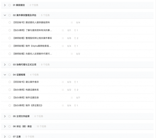 案件处理周期的缩短及有效监督同为律所迫切需要解决的问题。Alpha系统对此提供了全面的解决策略,其允许律所将法律项目详细分解成阶段性任务,每个任务都可在系统中明确指派并跟踪进度,确保了每一个细节都符合既定标准,降低了团队沟通成本,显著提高了办案质量与效率。